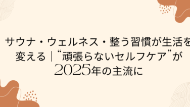 トレンド サウナ・ウェルネス・整う習慣が生活を変える“頑張らないセルフケア”が2025年の主流に サウナ・ウェルネス・整う習慣が2025年の注目トレンド。家でできる整い方やサウナの魅力、今日から始められるセルフケア方法をカジュアルに紹介。 2025.11.16 トレンド